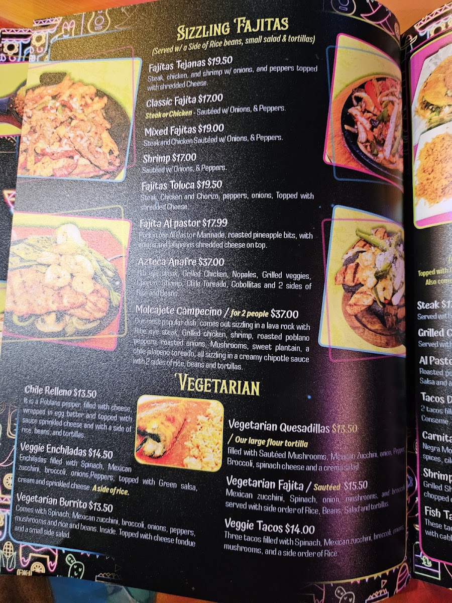 ???? Fajitas Tejanas A sizzling skillet straight out of Texas, with that unmistakable El Rey Azteca twist. This trio of grilled steak, chicken, and shrimp is seared to smoky perfection and tossed with sweet grilled onions and vibrant bell peppers, ...